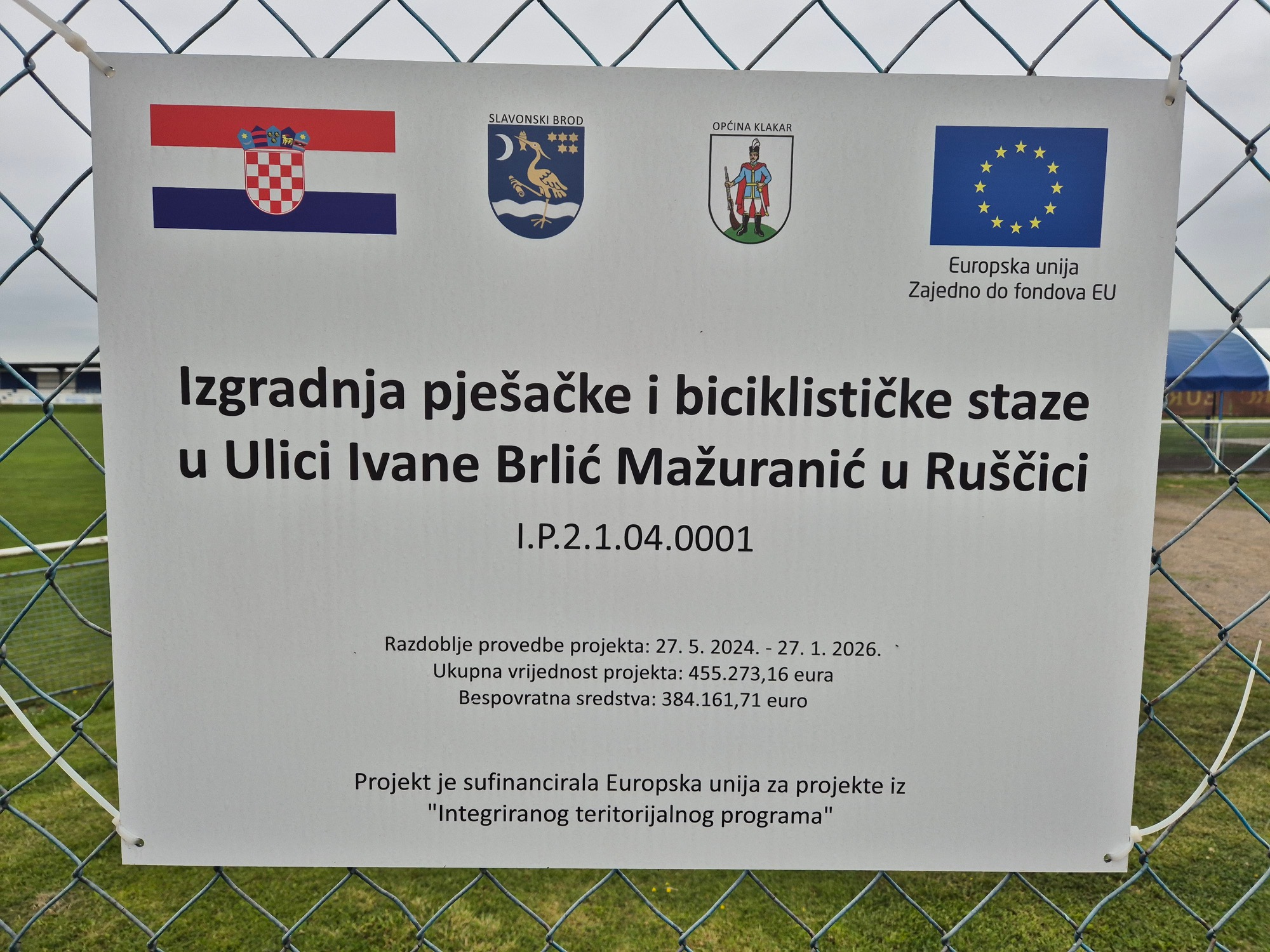 Projekt “Izgradnja pješačke i biciklističke staze u ulici Ivane Brlić Mažuranić u Ruščici” provodi