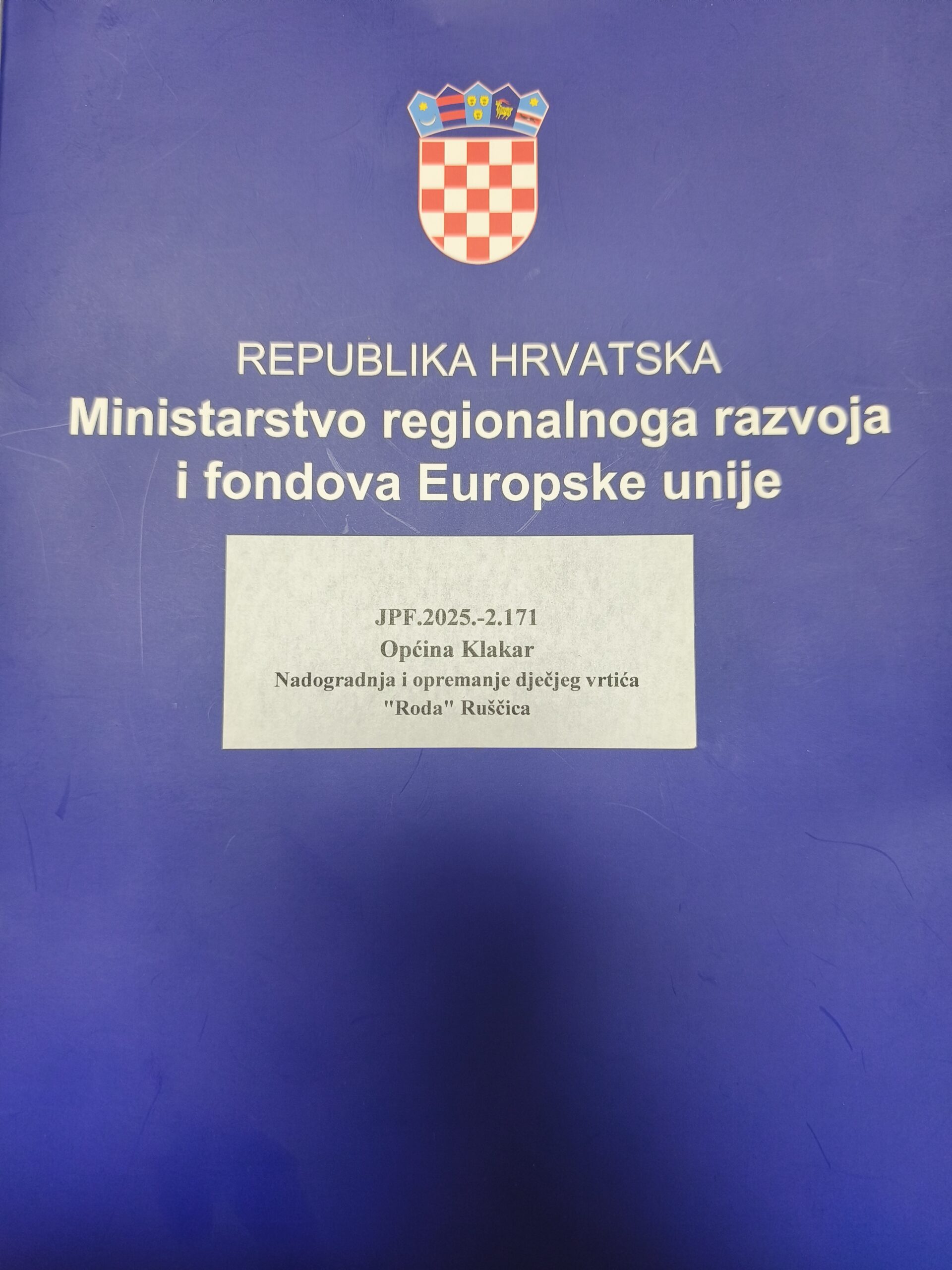 Općina Klakar, dana 18. kolovoza 2025. godine, potpisala je Ugovor o dodjeli bespovratnih sredstava u sklopu Programa „Konkurentnost i kohezija“ 2021. – 2027., za projekt PK.6.1.01.0091 – „Nadogradnja i opremanje dječjeg vrtića Roda, Ruščica“.